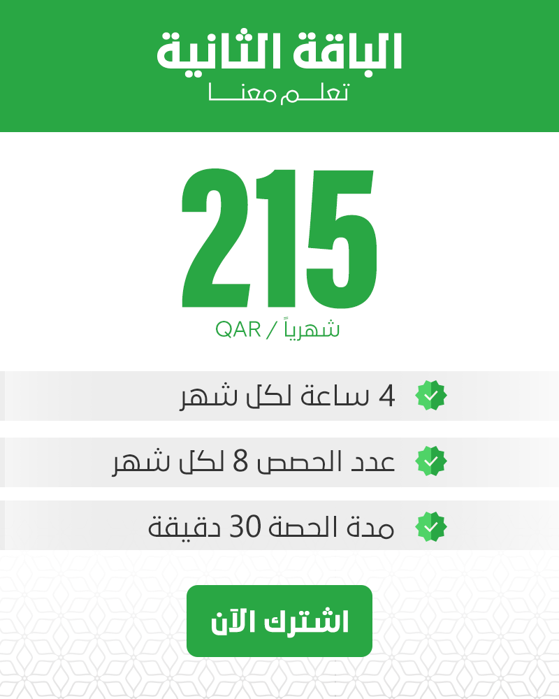 4 ساعات في الشهر / عدد الحصص 8 / مدة الحصة 30 دقيقة