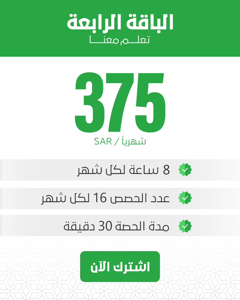 8 ساعات في الشهر / عدد الحصص 16 / مدة الحصة 30 دقيقة